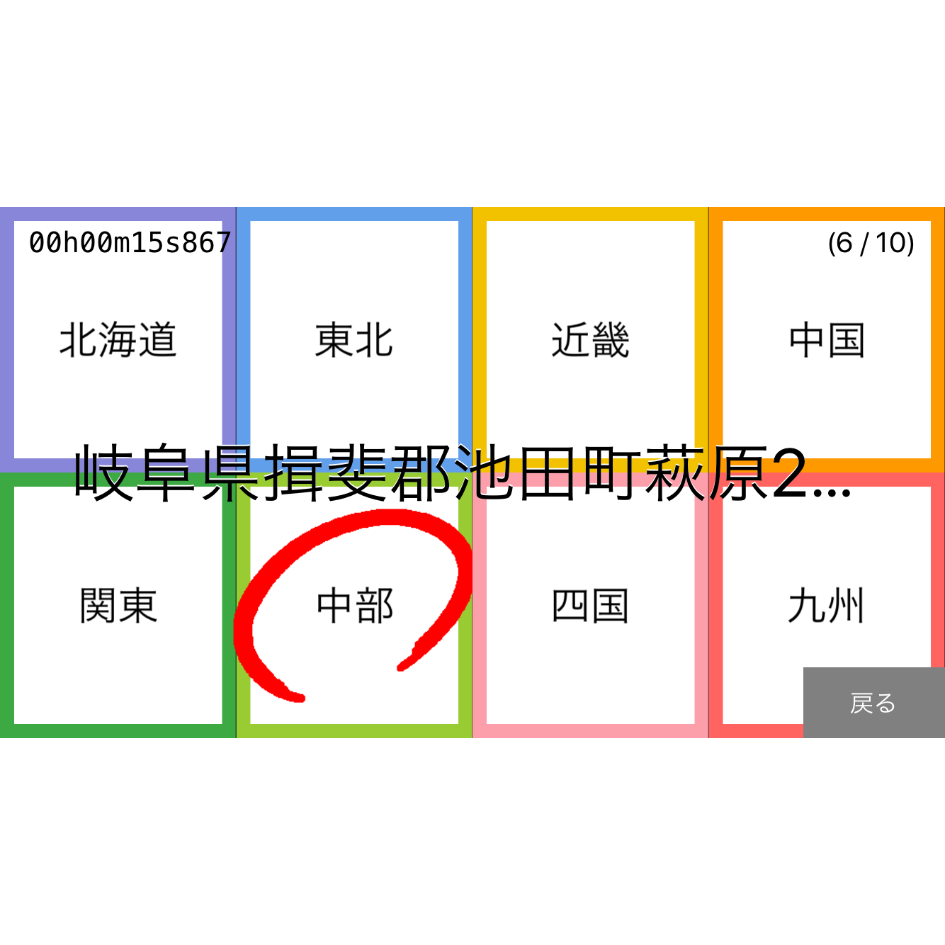 住所を見てそれがどの地方に入っているかを当てる脳トレアプリ。